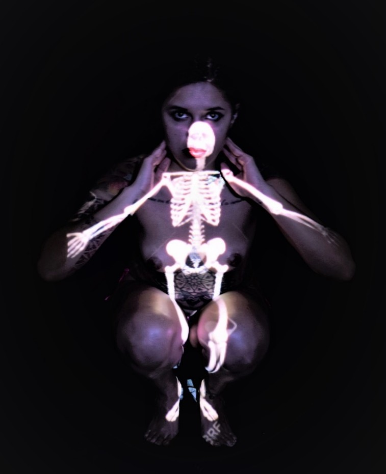Mi trabajo artístico propuesto para esta muestra, expone estas inquietudes, donde se retoman las raíces simbólicas y plásticas como los cráneos empalados del Tzompantli, la visión sacralizada de la calavera y su resemantización en el contexto de la cultura popular. Los diseños están siempre dialogando con el nacimiento y su final, el pasado, el presente y con el no futuro, a veces juguetón -que no existe en la muerte-.